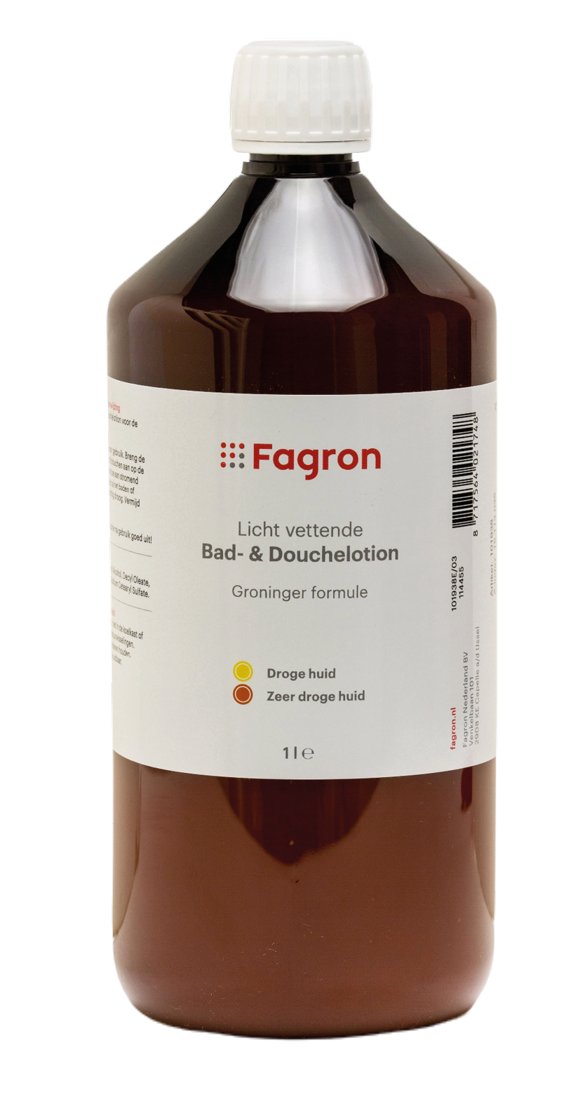 Fagron Groninger Bad & Douche Lotion is een licht vettende, uiterst milde bad en douchelotion speciaal geschikt voor de zeer gevoelige huid. Deze lotion bevat geen parfum of parabenen en is tevens geschikt bij pinda-allergie. Fagron Groninger Bad & Douche