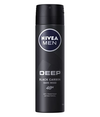 Nivea Men Deep Dark Wood Anti-transpirant beschermt de huid tegen transpiratie en bacteriën voor een langdurige droog en schoon huidgevoel. De effectieve formule met Black Carbon werkt krachtig tegen bacteriën en heeft een mannelijke Dark Wood geur.