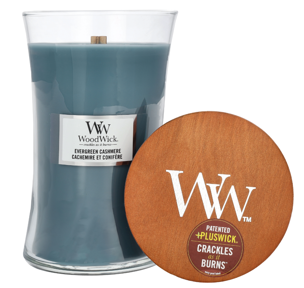 Bestel Woodwick Evergreen Cashmere Large Hourglass Candle 0 op werkdagen voor 20.00 uur en je hebt je bestelling morgen al in huis!